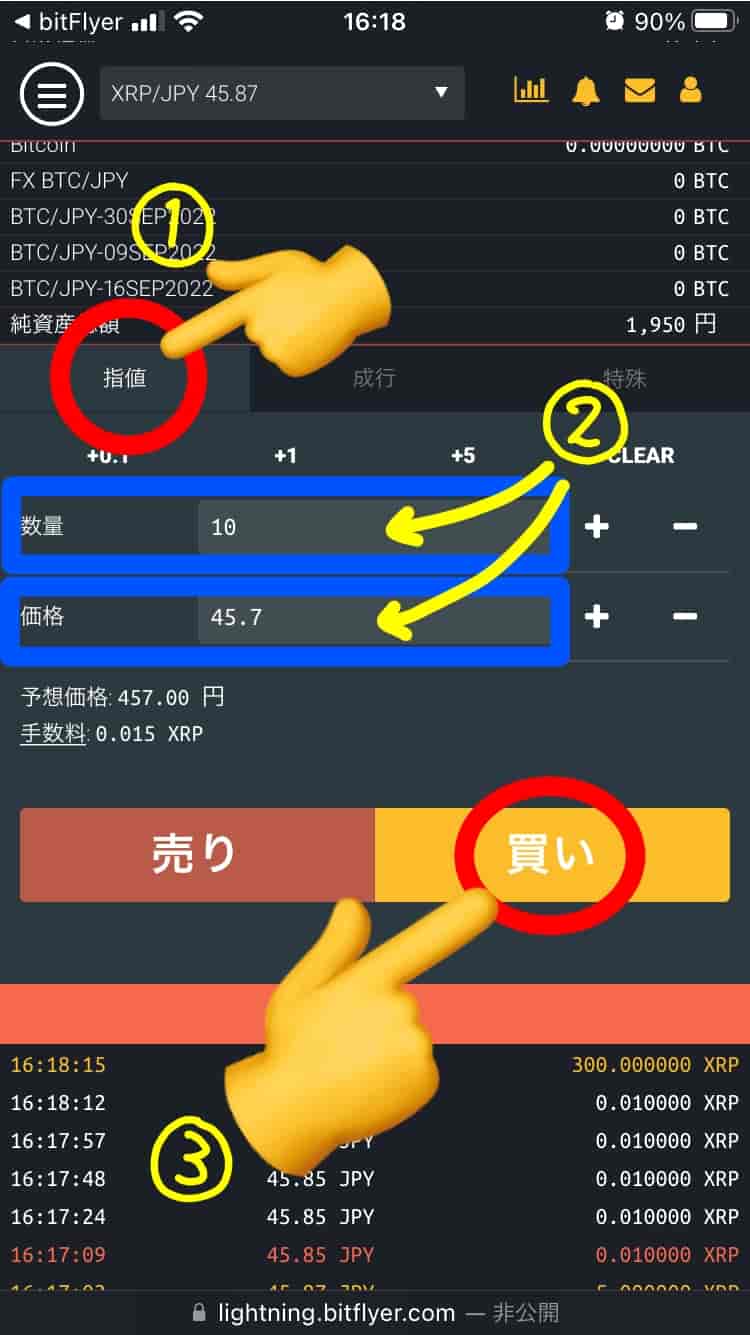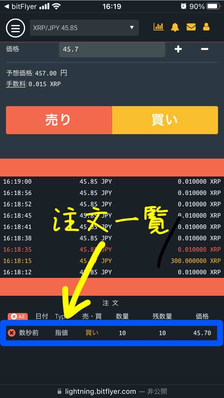 スマホアプリでは『XRPは販売所での取引のみ」です😓