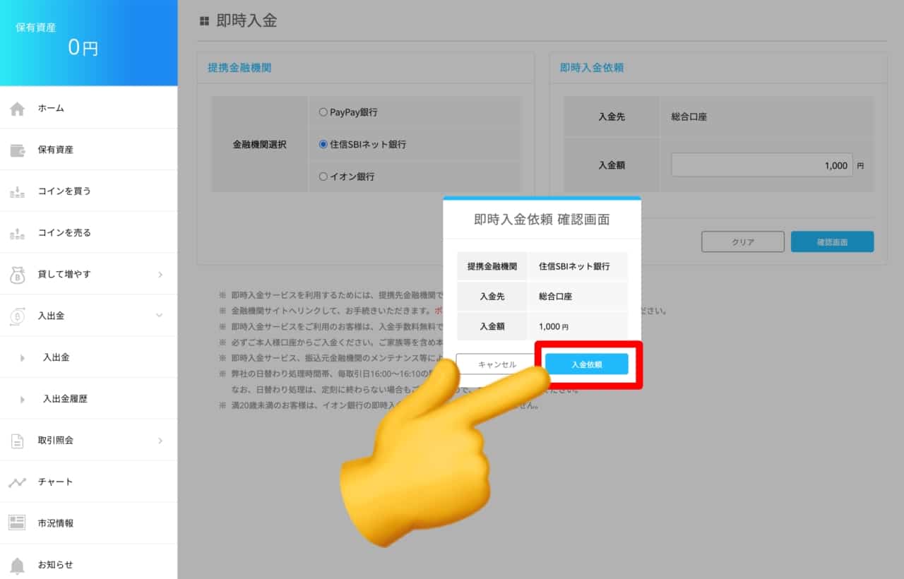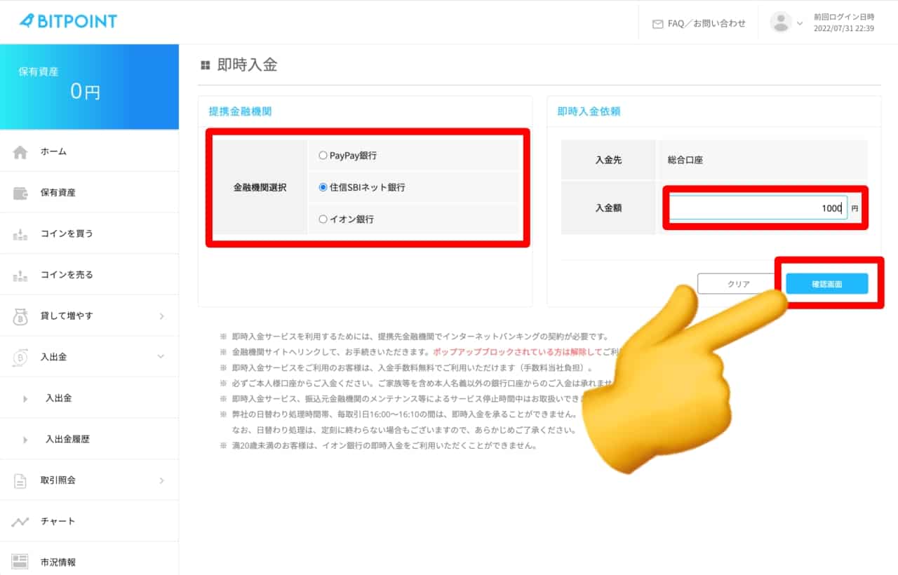 この記事では、住信SBIネット銀行→BITPOINT口座へ即時入金する方法を解説します。