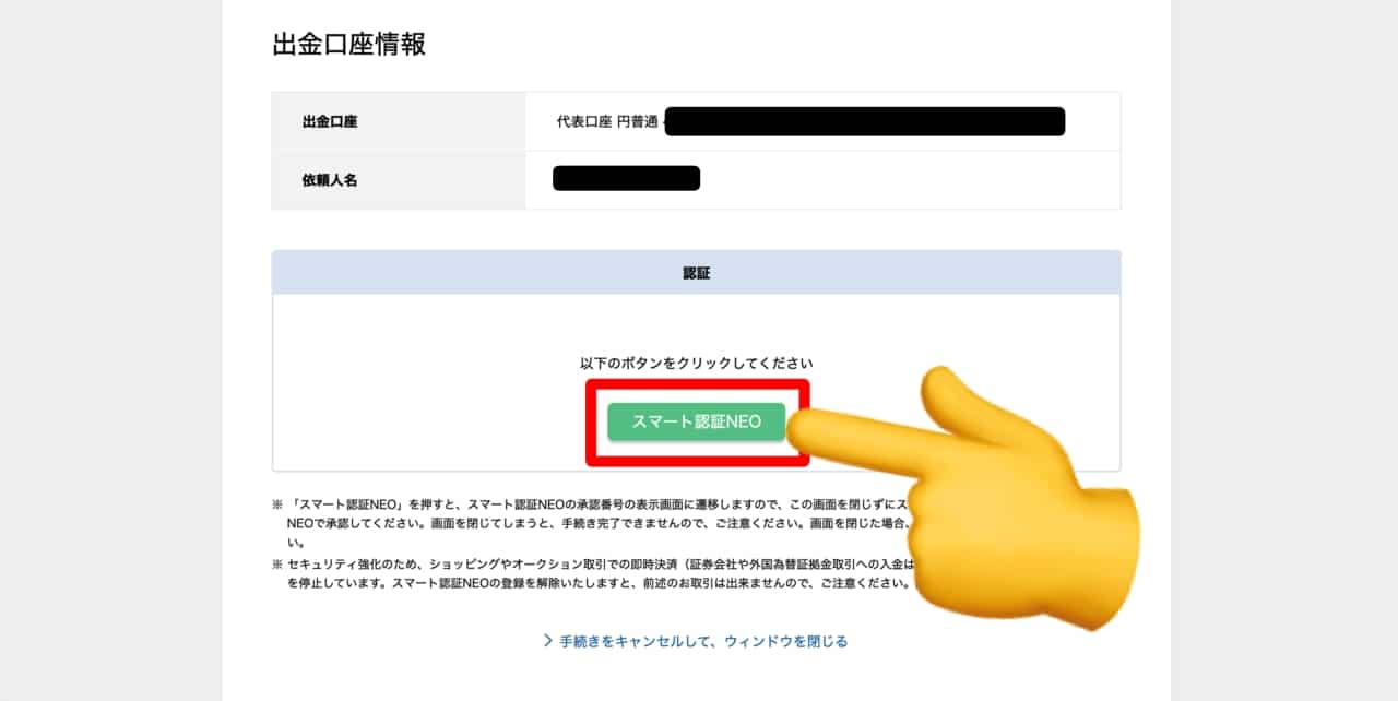 ❸内容を確認し【スマート認証NEO】をクリックします。