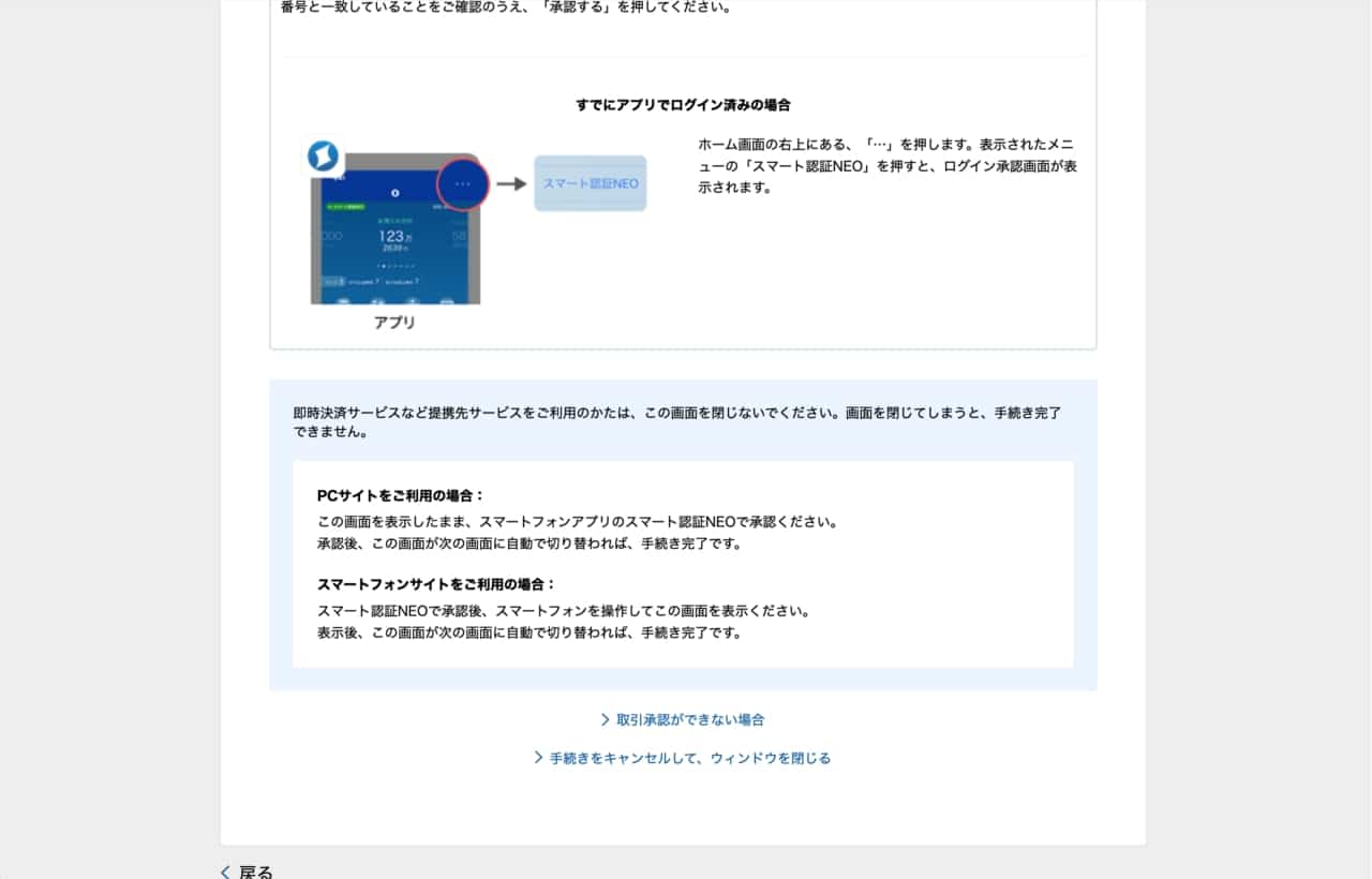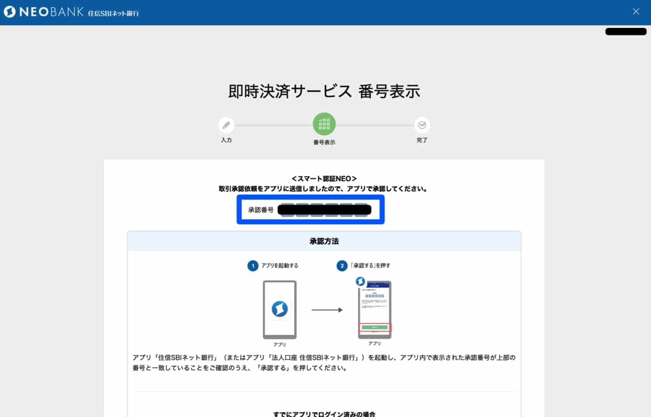 ❹取引認証依頼が住信SBIネット銀行アプリへ送信されます。